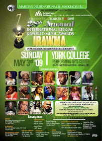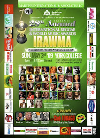 "We are very pleased with the response we are now receiving from the Caribbean and the rest of the world, and the respect that IRAWMA has been getting," states Ephraim Martin, President of Martin's International and Associates. "When we think back 28 years ago, there was no form of recognition for reggae or world music entertainers. Today, from all corners of the globe, world beat music entertainers now have their special awards to look forward to each year."The 28th IRAWMA kicks off at 6:00pm for VIP ticket holders, and 7:30pm for general admission. This year the ceremony takes place at the state-of-the-art York College Performing Arts Center, located at 94-45 Guy R. Brewer Boulevard in Jamaica, Queens.