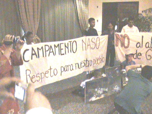 During the last session of Day 2 (April 15th 2009) on the 3rd Indigenous Leaders Summit of the Americas, the Indigenous delegates gathered were unpleasantly surprised to hear firsthand about the historic and ongoing suffering of the Naso Tribal Nation of Panama. Several dozen weary Naso made an impromptu appearance in the conference room where Indigenous leaders from around the Hemisphere were gathered to finish the last round of discussions to finalize a plan of action for the 5 OAS heads of state Summit which was to begin immediately after our event in Panama.The Naso had heard that we were going to be there, and had traveled 24 hours without food to bring elders, women and children to deliver an emotional appeal to us - in the hope that we would in turn tell the wider world of their plight. The Naso Tribal Nation is comprised of 3,500 persons living in 11 tribal villages, and as recently as the 30th of March 2009; 150 heavily armed Panamanian policemen entered Naso territory and destroyed 30 homes, and as a result 200 Naso including 65 children became homeless and were forcibly evicted from their own community on the San San river.