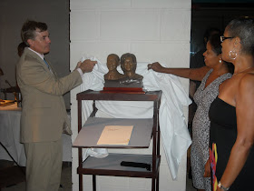 Also providing speech but of lesser time taken, was Vere Browne of the BIDC, who referred to his own childhood where he wanted to see sculptures reflecting his Caribbean nature and not just the usual tableaus of ancient British pastimes. He indicated this was partially why he supported Art Edwards' endeavour to create an "Install & Emulate" project using his busts at various schools, so Bajan children would understand that these local heroes also drove teachers crazy or were humbugged by the principal for various reasons, correct or otherwise.